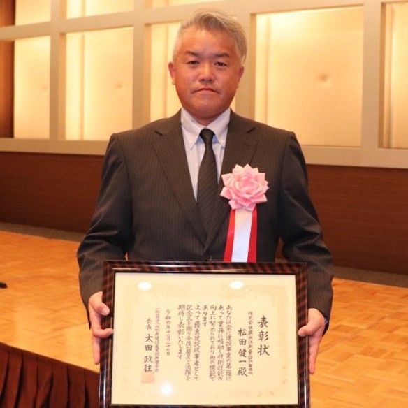当協会からは、株式会社寒河江測量設計事務所の松田健一氏が、山形県建設産業団体連合会会長表彰を受賞しました。